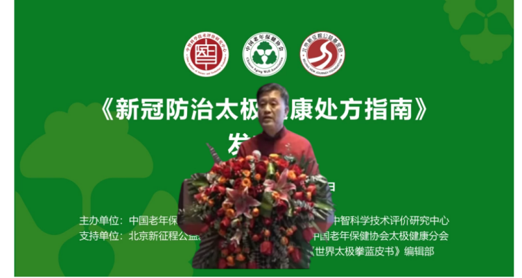 2022年12月30日下午,《新冠防治太极健康处方指南》新闻发布会在京召开。发布会由中国老年保健协会、中智科学技术评价研究中心联合主办,中国老年保健协会太极健康分会、《世界太极拳蓝皮书》编辑部联合承办,北京新征程公益基金会支持。